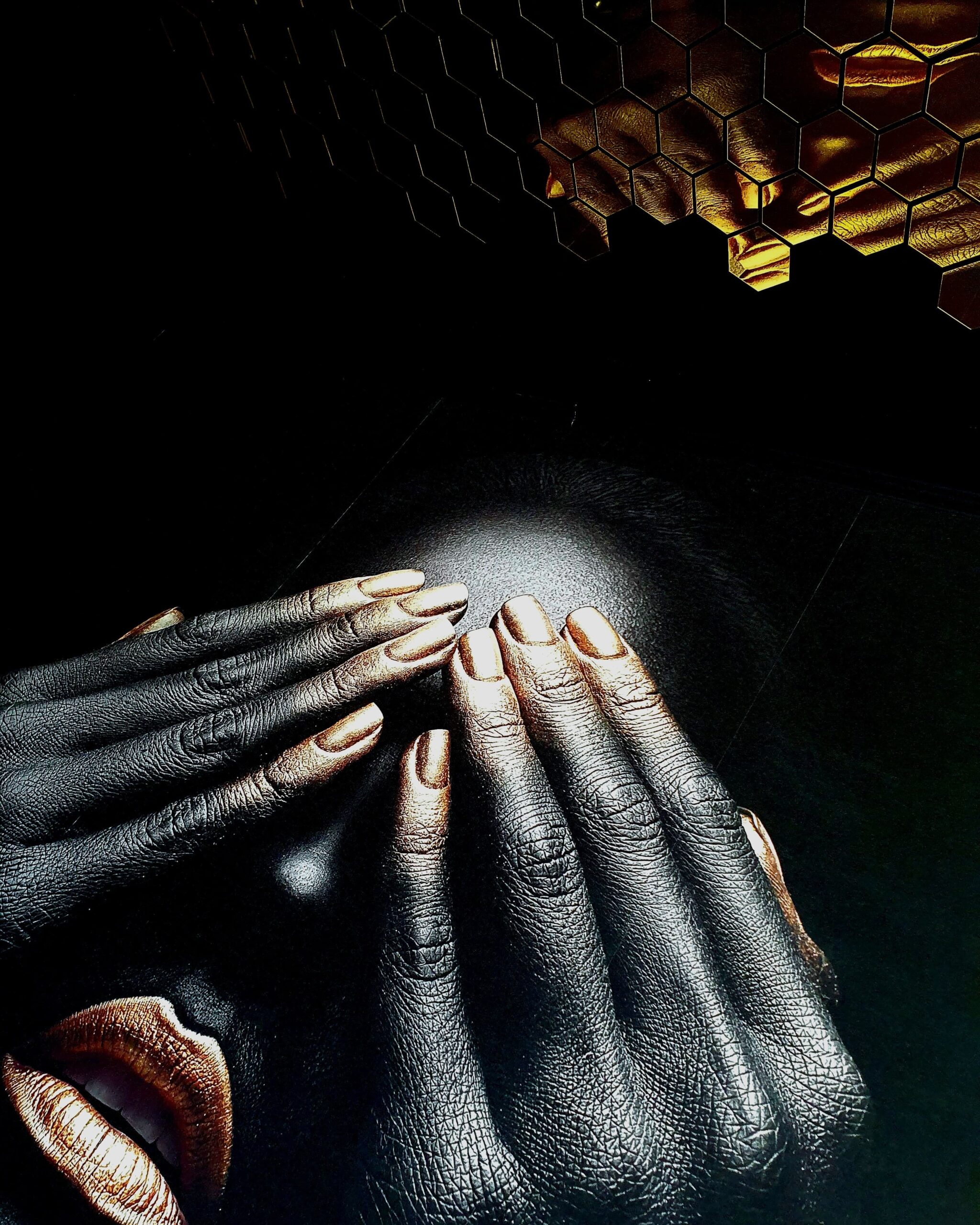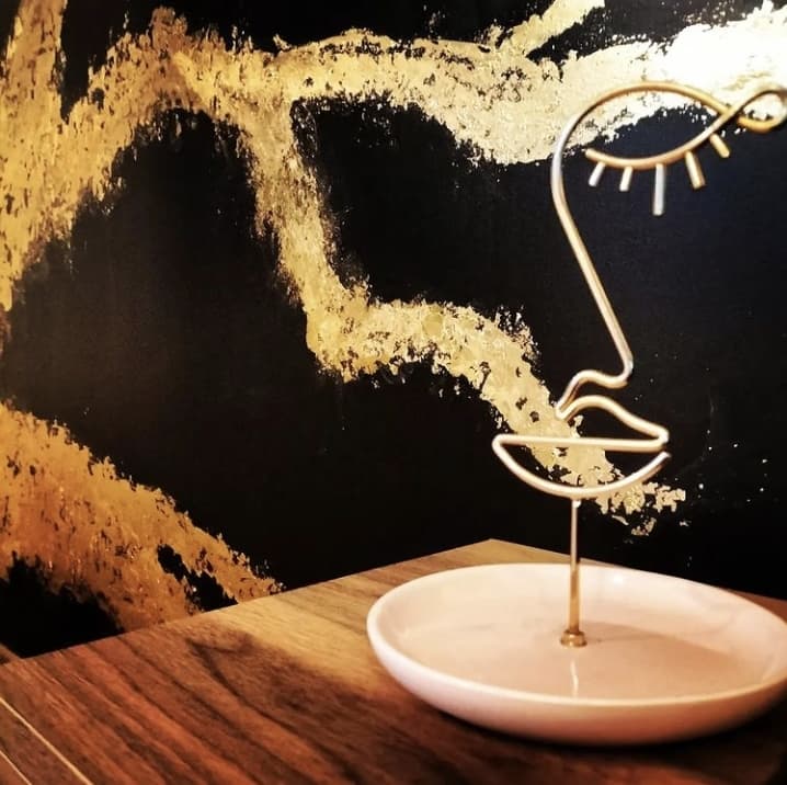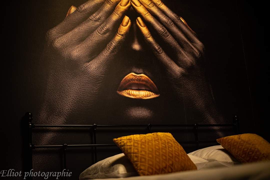 Plongez dans une ambiance sombre et chic avec des textures de cuir, de velours, aux tons noir et or .